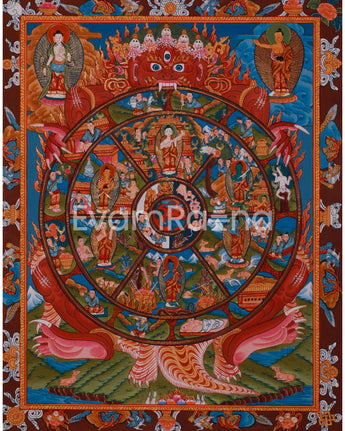 The Buddhist Wheel of Life Thangka Depicting the Cycles of Existence & the Path to Nirvana