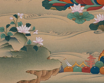 HAND-PAINTED WITH NATURAL LHASA STONE COLOR AND GENUINE 24K GOLD IN TRADITIONAL KARMA GADRI STYLE