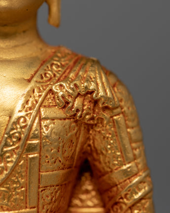 The Five Dhyani Buddhas have been identically carved with machines to carve the copper body and painted with 24k genuine gold by hand to bring out the accurate iconography of each Buddha.