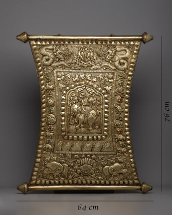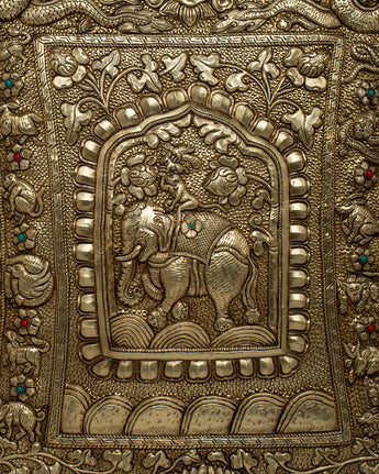 Presenting our Four Harmonious Friends Metal Wall Hanging, which draws inspiration from the classic Tibetan pattern called "mthun-po spun-bzhi" or "Catvari anukulabhratr" in Sanskrit. This magnificent work of art, which is 76 cm tall and handcrafted with great care on a brass body, represents the ageless lesson of harmony and cooperation.