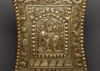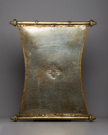 A metal thangka is a type of thangka painting that is made on a metal surface rather than on traditional canvas or paper. Metal thangkas are often made using copper, brass, or silver and are usually decorated with intricate designs and Buddhist iconography using a technique called repoussé. This involves hammering the metal from the reverse side to create a raised relief image on the front. Metal thangkas are known for their durability and are often used in ritual contexts or as decorative pieces in Buddhist homes and temples. They are particularly common in Tibet, where they have been produced for centuries.