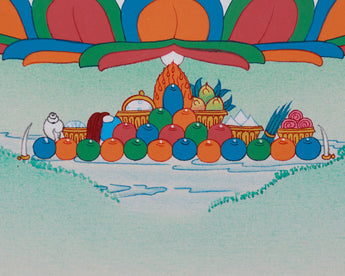 As requested for consecrations/blessings, we can take thangka to Monasteries/Rinpoches from nearby Boudha Stupa. We kindly ask you to offer $50 for the monasteries for blessings/consecration services.