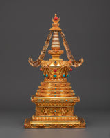 Handcrafted Tibetan Buddhist Chorten | Gold-Plated Copper Stupa
