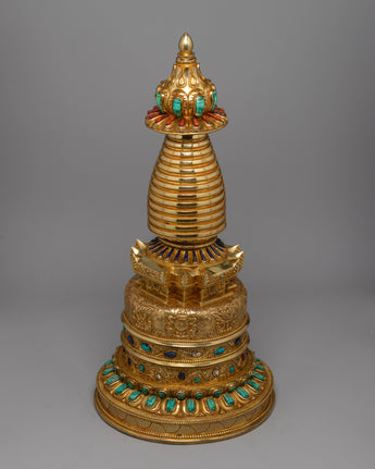 This genuine Tibetan stupa is ideal for meditation rooms, shrines, or other hallowed places. It serves as a decorative accent that promotes harmony and good vibes in addition to serving as a spiritual focal point. This stupa is the perfect piece of handcrafted art for anyone who practices Tibetan Buddhism or is looking for a meaningful piece of art. It is a unique combination of modern quality and traditional craftsmanship.