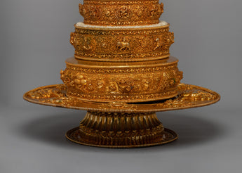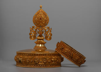 This Mandala Offering Set is elaborately crafted with Buddhist symbols and themes, which are wonderfully arranged to depict the universe's harmonious structure. Each layer of the mandala is decorated with auspicious symbols such as the lotus, the wheel of dharma, and the endless knot, all of which hold great significance in Buddhist thought. The mandala's structure reflects the journey to enlightenment, with each layer representing a distinct component of the spiritual path. The auspicious symbols serve as reminders of the interconnection of everything and the wisdom required to overcome suffering.