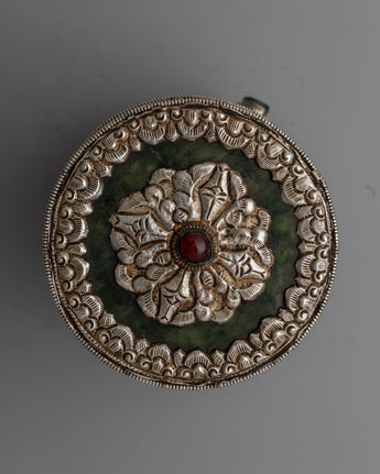 Tibetan Circular Box Decorated | Ideal for Spiritual Use or as a Unique Decorative Piece