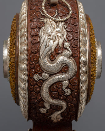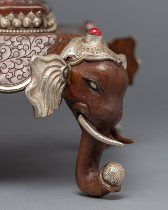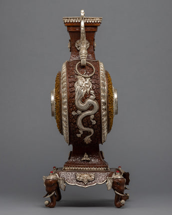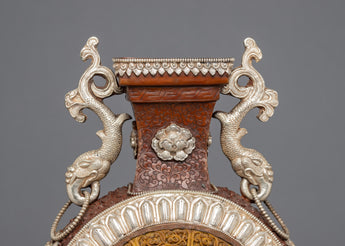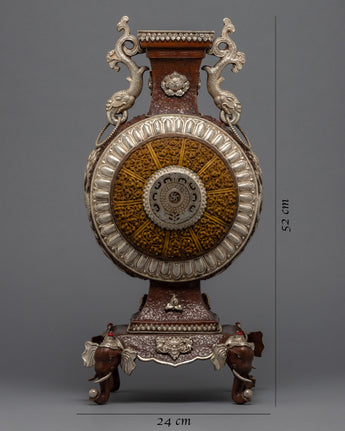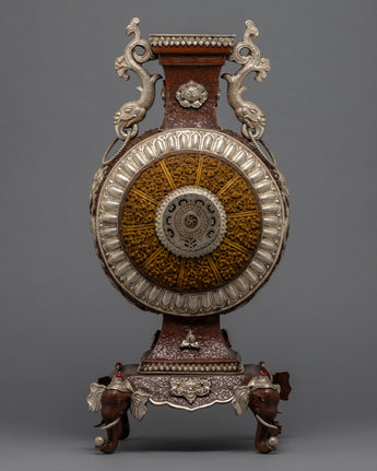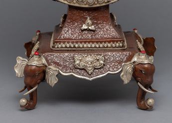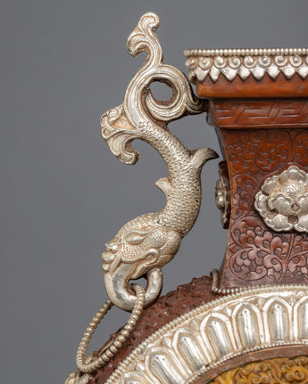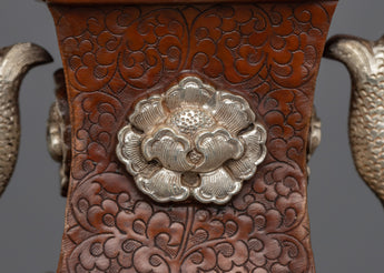 Handcrafted on a copper body with silver plating, the Tibetan Flower Vase is a stunning work of art. The vase is decorated with an auspicious symbol and is set on an elephant base. In Tibetan culture, the elephant is a symbol of strength, power, and wisdom, and it is frequently featured in Buddhist art. Its elaborate design and use of high-quality materials make it an excellent addition to any collection of Tibetan art.