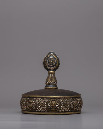 The Tibetan Mandala Offering Set is an excellent tool for ritual practice as well as a visually attractive decorative item, making it perfect for spiritual seekers, art collectors, and art enthusiasts. This set encourages deep thought and devotion whether it is utilized in meditation sessions, exhibited on a holy altar, or is part of a prestigious collection. Its deep spiritual symbolism and aesthetic beauty enhance any setting, making it a treasured addition to any collection or hallowed area. This offering set is more than just a pretty item; it's a significant relic representing fine craftsmanship and profound spiritual values.
