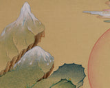 Milarepa, renowned for his profound poetic songs and teachings, is depicted seated in a tranquil landscape that reflects the serene highlands of Tibet. This landscape symbolizes the secluded retreats where he pursued enlightenment through intense meditation and asceticism. The artwork closely follows descriptions from traditional meditation manuals, ensuring that every detail, from his posture to the surrounding environment, is rich in symbolic accuracy and spiritual intent.