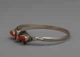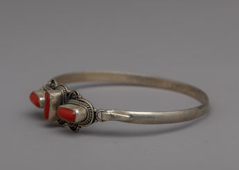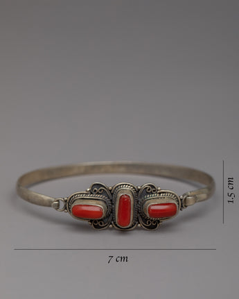 We present to you the exquisite Silver Bracelet, a genuine example of expert craftsmanship and enduring beauty. This bracelet is made from a premium silver alloy and is meticulously handcrafted, guaranteeing both durability and elegance. The vibrant coral stone, which has been painstakingly incorporated into the bracelet's design, serves as the centerpiece of this stunning piece. The coral stone, which symbolizes vitality, passion, and protection, not only adds a touch of natural beauty but also has symbolic meaning. This silver bracelet with an embedded coral stone is a must-have accessory for those looking for a blend of elegance and significant adornment due to its meticulous craftsmanship and captivating design.