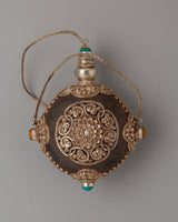 Tibetan Snuff Pot with Turquoise Inlay | Ritual Container for Spiritual Use