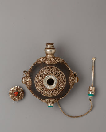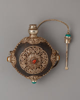 Tibetan Snuff Pot with Turquoise Inlay - Spiritual Container or Decorative Piece