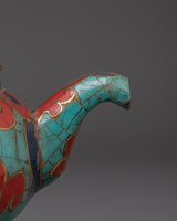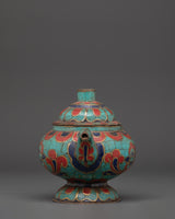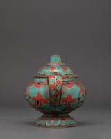 The Tibetan Teapot with Gemstones is a stunning example of traditional workmanship and spiritual artistry. This handcrafted tea pot, measuring 16.5cm in height and 23cm in width, is intended to be both utilitarian and decorative. The inclusion of turquoise, lapis lazuli, and coral stones not only improves the piece's beauty, but also imbues it with deep cultural importance. This teapot, perfect for any tea enthusiast or collector, will enrich your tea ceremonies with its magnificent design and profound spiritual connotation.