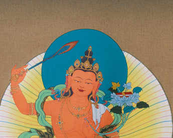 Tibetan Thangka of Wisdom Buddha Manjushri | Guardian of Knowledge and Enlightenment