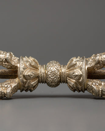 In Tibetan Buddhism, the bell (Ghanta) produces a clean sound that is said to remove negativity and improve attention, whereas the Vajra (Dorje) represents enlightenment and heavenly power. Combined, they balance masculine and feminine energies, bringing practitioners toward inner peace and spiritual development. Whether utilized in daily rituals, prayer sessions, or as a significant altarpiece, this magnificent handcrafted set is a must-have Buddhist artifact for practitioners and collectors.
