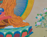 A transcendent masterpiece by Buddha Amitabha Thangka is unveiled, bringing divine radiance to life on premium canvas. Amitabha's peaceful face is skillfully crafted with each brushstroke, expressing the depth of his unending compassion. Thoughtfully combined hues of natural stone create a vivid palette that represents the Buddha's boundless light, and delicate details gilded in 24K gold signify wisdom's transcendence while also adding luxuriousness. A significant connection with the bright energy and transformative presence of Amitabha Buddha is invited by the harmonious harmony of premium canvas, natural stone colors, and 24K gold embellishments on this thangka, which resonates with timeless spirituality and enlightenment.