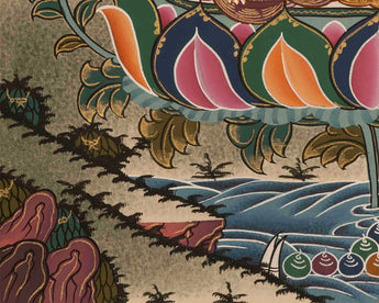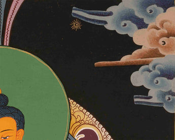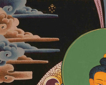 This handpainted thangka serves as a sacred object of veneration and inspiration for Buddhist practitioners and is used in homes, temples, and monasteries for meditation, prayer, rituals, and ceremonies. The Buddha's teachings of compassion, wisdom, and liberation are embodied in this thangka, inspiring practitioners to cultivate these qualities in their own lives.