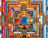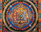Our thangka is a handpainted Tibetan art of Traditional Kalachakra Mandala, done using traditional methods. It is a unique piece created using genuine 24K gold and natural stone colors.