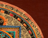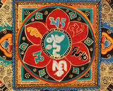 The mandala features a central lotus-like shape encircled by intricate concentric patterns, each adorned with sacred Tibetan symbols and mantras. These features promote meditation and spiritual growth, making them a valuable resource for practitioners seeking to deepen their connection with the divine. With dazzling colors such as red, blue, and yellow, each sign carries a profound meaning - red symbolizes power, blue represents knowledge, and yellow signifies enlightenment, creating harmony and fostering spiritual growth in any environment.