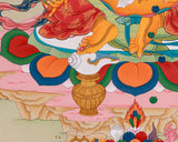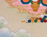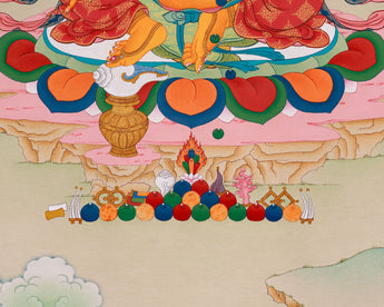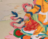Our Traditional Hand-painted Wealth Deity Art features rich hues and textures imbued with natural stones and genuine 24K gold. The intricate detail and vibrant iconography of the Karma Gadri style are showcased in this visually striking and spiritually meaningful piece. Created by Enlightenment Studio, it embodies the sophistication and spiritual depth of Tibetan Buddhism.