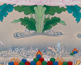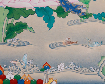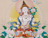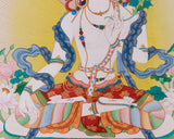 The Nagkanya at the right side bottom of the thangka is a unique feature, offering devotion to White Tara, symbolizing spiritual protection and cleansing obstacles. This thangka invites healing energy and protective blessings into your home or meditation space, serving as a reminder of compassion's power and the path to longevity and peace. It is ideal for practitioners and collectors seeking both spiritual depth and exquisite artistry.