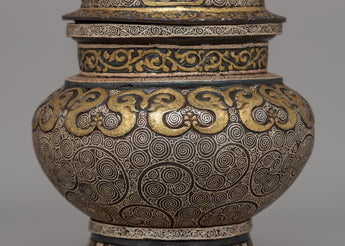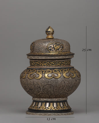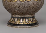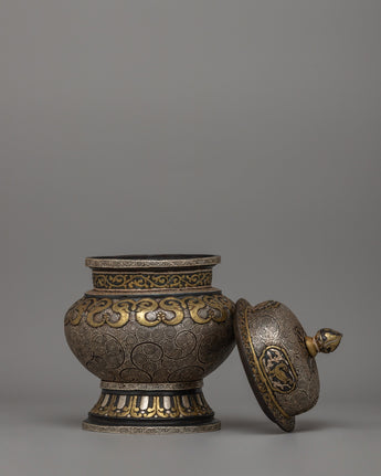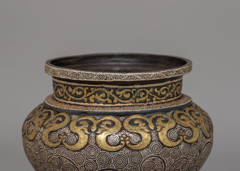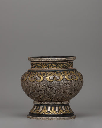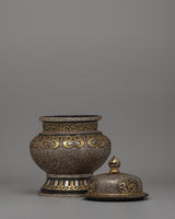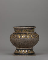 Traditionally Crafted Rice Pot with Brass and Silver Inlay for Spiritual Offerings