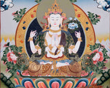Traditionally Hand-Painted Chenresig Thangka | Best Quality Tibetan Thangka Art