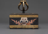 Ritual tools are vital to Tibetan Vajrayana Buddhism practice and are meant to dispel misconceptions that obstruct enlightenment. The phurba (Sanskrit: Kila) blade seen here was created to symbolically swallow the three poisons that hinder spiritual progress: ignorance, greed, and illusion. The Phurba is the physical manifestation of the Vajrakila Buddha, who can destroy all evil on the earth. Its ceremonial usage is first recorded in the Vajrakilaya Tantra, an eighth-century or older Vajrayana work.