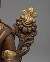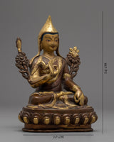 Tsongkhapa has been masterfully crafted. The statue of a deity sitting atop a moon disc lotus seat that we have depicted is magnificent, and the robe it is dressed in is captivating.