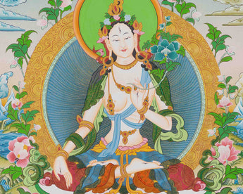 White Tara Thangka Painting | Compassionate Goddess | Tibetan Meditation Art