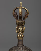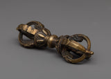 Dual Material Design: The bell, fashioned from rich bronze, complements the robust brass vajra, presenting a harmonious pairing.