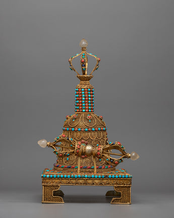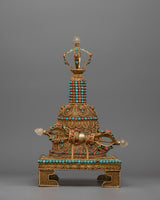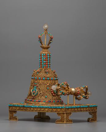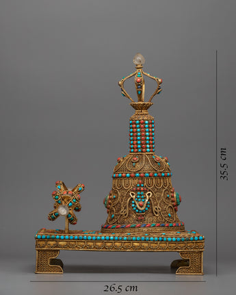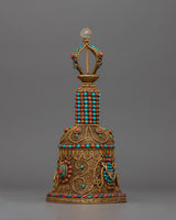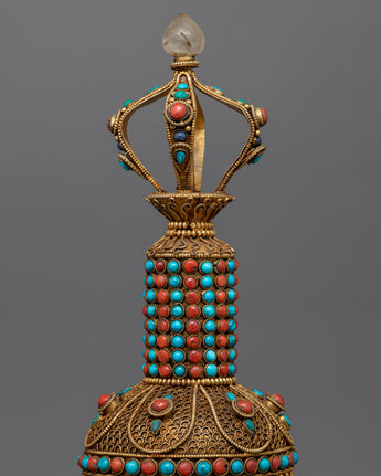 Embedded with precious gemstones such as coral and turquoise, the set exudes vibrant energy and symbolic meaning. Coral represents vitality and protection, whereas turquoise represents the purity of an enlightened mind. Together, they imbue the Vajra Bell Ghanta Set with transformative power, propelling your spiritual practice to new heights.