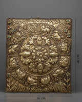 The Vajra Metal Thanka displays the exquisite craftsmanship of our artisans in every little detail, which emanates authenticity and elegance. The piece's ageless appeal stems from the brass material, and the carefully created Vajra and surrounding Zodiac signs give a harmonic synthesis of artistic expression and tradition.