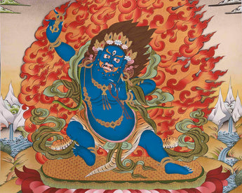 Our Vajrapani Thangka is an elegant artwork that enhances the energy of your space, promoting courage, strength, and spiritual protection. It's perfect for home, office, or sacred spaces, inspiring you to overcome obstacles and pursue your spiritual journey with determination.