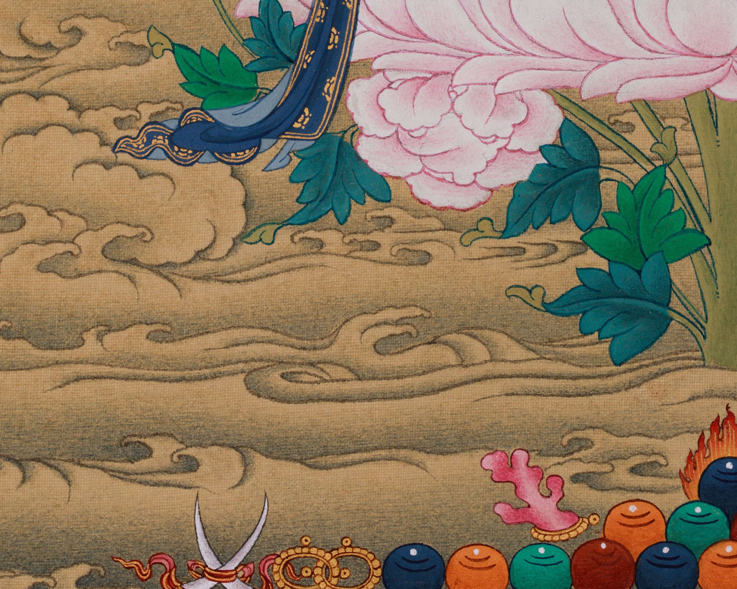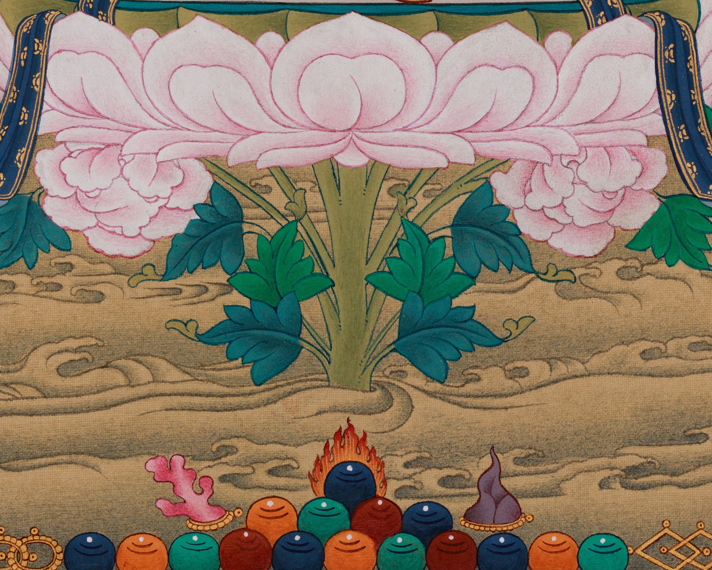 HAND-PAINTED WITH NATURAL LHASA STONE COLOR AND GENUINE 24K GOLD IN TRADITIONAL KARMA GADRI STYLE