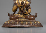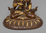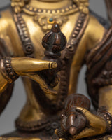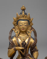 Our Tibetan statue of Vajrasattva, the great purifier, was handcrafted in Kathmandu using 24 karat gold and corals. This statue depicts Vajrasattva sitting in the full lotus pose on top of a single lotus pedestal.