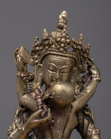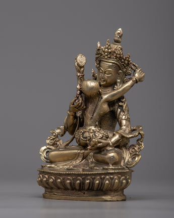 The Brass Vajrasattva with Consort Statue is an excellent choice for personal altars, meditation rooms, or sacred locations, as it represents cleansing, compassion, and spiritual connection. Its presence encourages meditation, healing, and a deeper connection to the enlightened characteristics embodied by Vajrasattva and his companion.