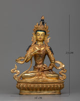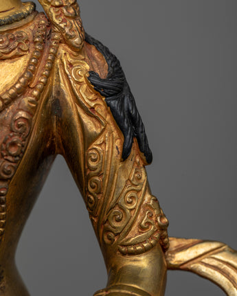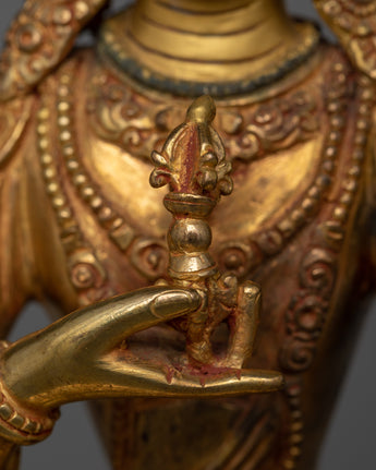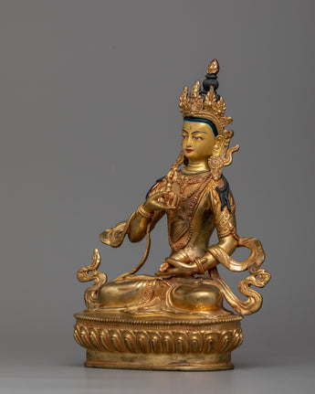 Savor the heavenly presence of the beautifully sculpted Vajrasattva Yidam Statue on a shiny copper body. This holy emblem is given life by each expertly crafted stroke, giving it a deep spirituality and classic elegance. Embellished with an extravagant coating of 24k gold plating, it exudes luxury and purity, representing the pinnacle of enlightenment.