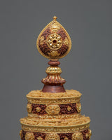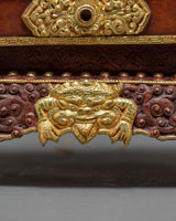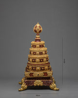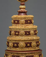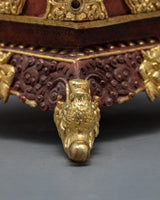 A heavily decorated Mandala set, handcarved and definite, is made of full copper and plated with pure gold. This particuar set accompanies a one of a kind elephant-head stand and the roundabout rings has wonderful Ashtamangala carvings~symbols of flourishing and prosperity. This gold-plated Mandala will be a significant gift to your companions and friends and family and to yourself.