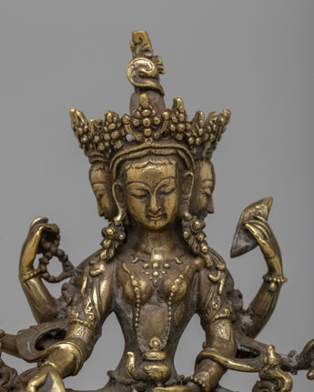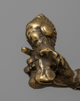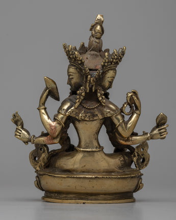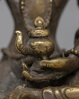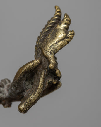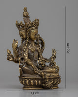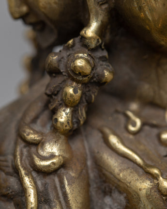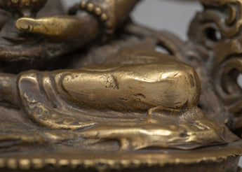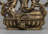 The painstakingly created Vasudhara Sadhana Statue is made of brass and measures 15.5 cm in height by 13 cm in breadth. It weighs 0.77 kilogram. Vasudhara is honored in Buddhist tradition as a symbol of riches and success because of her power to give wealth and prosperity upon devotees.