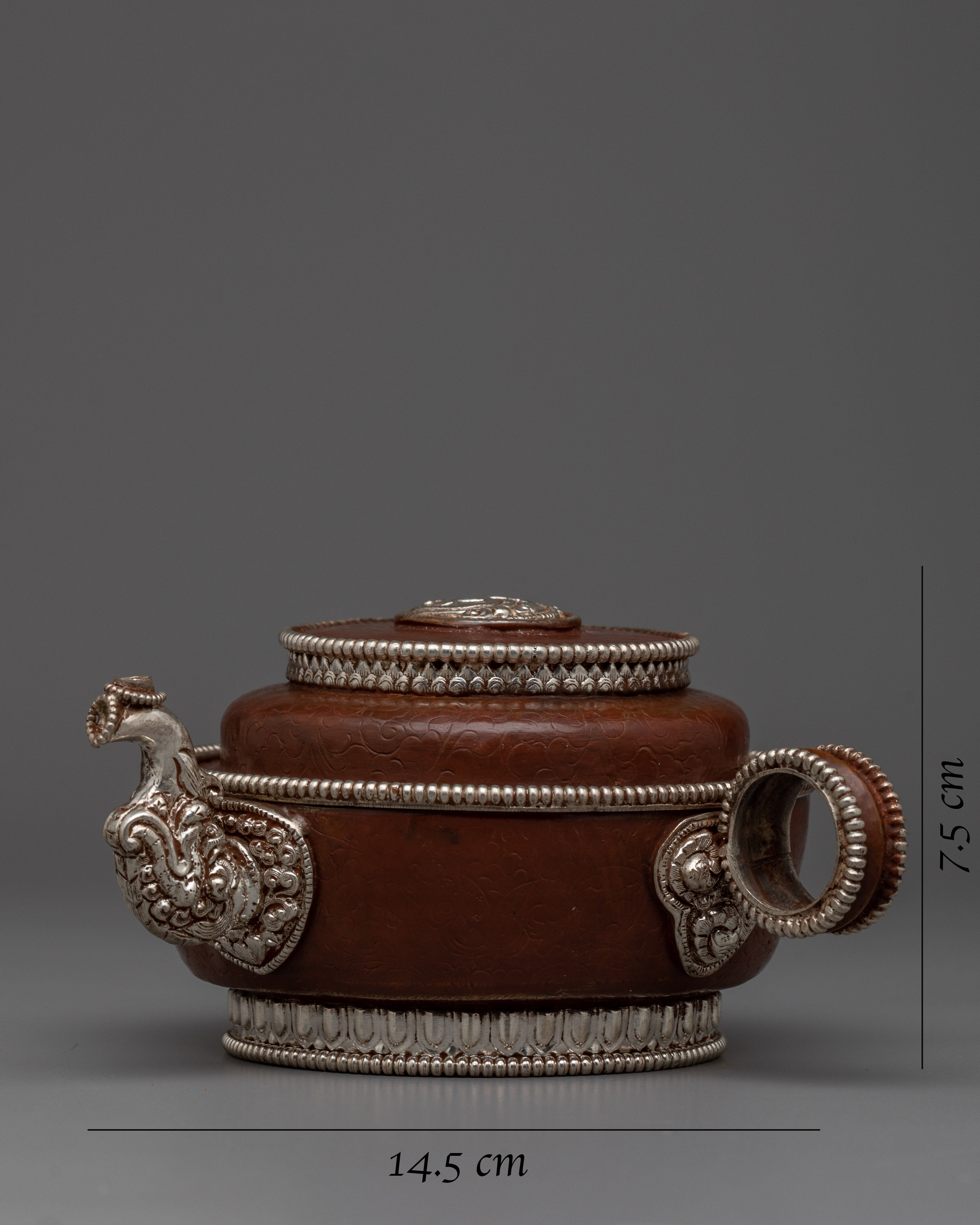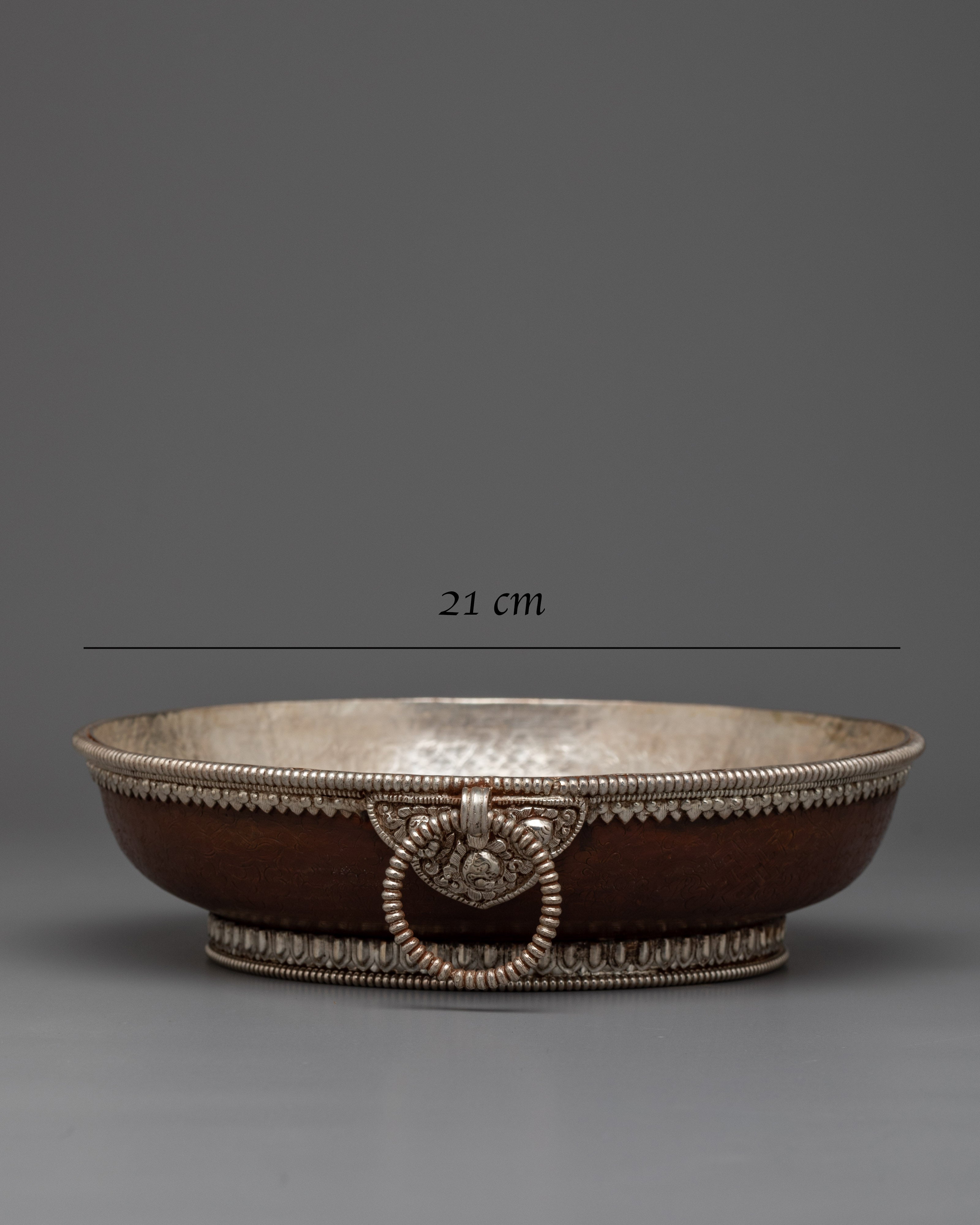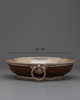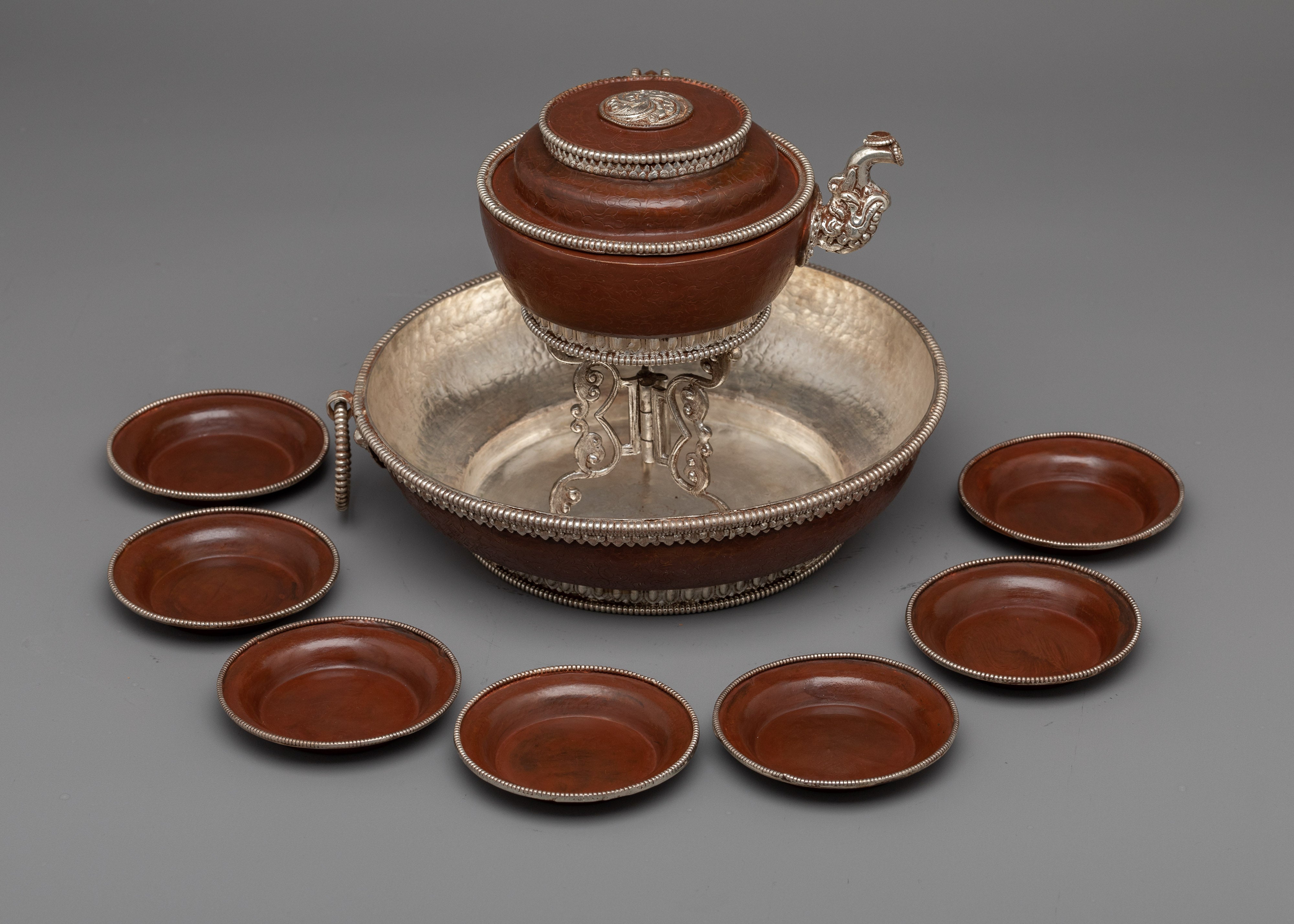 Our Jambhala Water Offering Set immerses you in the time-honored ritual of sacred offerings. This set is handcrafted with precision on oxidized copper and embellished with exquisite silver plating, capturing the aura of reverence and dedication. Each part is precisely crafted to enhance your spiritual practice and create a sacred environment in your room.