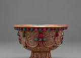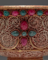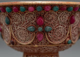 Water Purification Bowl | Copper Handmade Filigree with Semi-precious Stone Inlays | Ritual Item