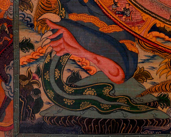 It goes without saying that every detail of a painting has a symbolic meaning. Regardless of your religious affiliation, a thangka can help you on your path to enlightenment, whether you practice Buddhism or have other religious convictions. Thangkas are paintings that depict deities with various iconographic elements and symbolism that encourage meditation on the teachings of the god they depict. Any thangka is intended to aid in the removal of the film of ignorance, which is a significant barrier to the road to enlightenment. The Thangka is revered as a holy item. They promote positivity, spread Buddhism's teachings, bring about peace, harmony, and oneness, and dispel any negative energy that may be there.