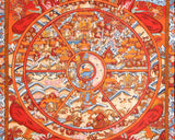 Enhance your spiritual practice with our Brocade Mounted Wheel of Life Thangka. You may use it as a focal point for your meditation room, or shrine or let it inspire mindfulness and a deeper connection to the essence of existence.