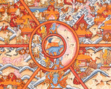 Wheel of Life Thangka with Brocade Silk Frame | Tibetan Bhavacakra Mandala