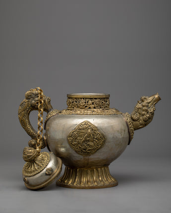 Accept the grace of our Buddhist White Metal Tea Pot, an ideal blend of artistic talent and usefulness. It elevates your tea rituals with a touch of sophistication thanks to its white metal construction.