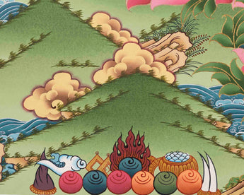 It goes without saying that every detail of a painting has a symbolic meaning. Regardless of your religious affiliation, a thangka can help you on your path to enlightenment, whether you practice Buddhism or have other religious convictions. Thangkas are paintings that depict deities with various iconographic elements and symbolism that encourage meditation on the teachings of the god they depict. Any thangka is intended to aid in the removal of the film of ignorance, which is a significant barrier to the road to enlightenment. The Thangka is revered as a holy item. They promote positivity, spread Buddhism's teachings, bring about peace, harmony, and oneness, and dispel any negative energy that may be there.