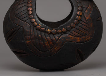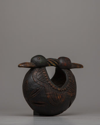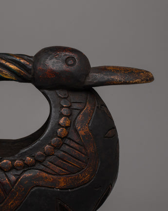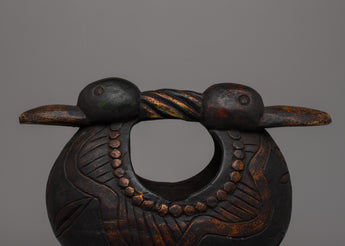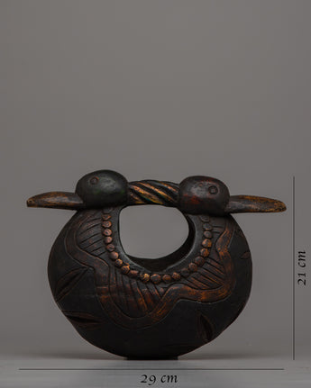 With the intriguing Wooden Boat Statue, you can infuse your room with a hint of creative elegance. This gorgeous sculpture, which is handcrafted on a wooden body, shows two birds arranged head-to-head on a circular base. Its symmetrical shape draws attention to its fine features and craftsmanship while creating a captivating visual appeal. This statue is a distinctive addition to any decor collection since it skillfully blends natural beauty with artistic flare, whether it is shown in your office or as the focal point of your mantle.