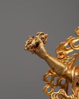We have exquisitely designed the gold sculpture of Wrathful Vajrapani in the traditional Himalayan Art of Nepal. This statue is craved using machines in our studio. The deity is depicted seated atop a moon disc lotus seat with a wrathful expression. The body is made using copper and electroplated using 24K pure gold. You can use this statue in varieties of Buddhist rituals, and regular meditational or yoga activities. This art of Himalayan from Nepal will be a great gift to a practitioner like you.