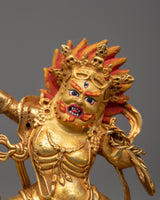 Wrathful Vajrapani Gold Sculpture | Traditional Himalayan Art